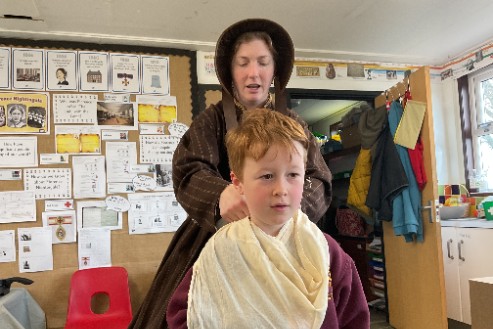 Year 2 would like to say a huge thank you to FOWPA for funding our visit from the Lady Time Traveller (Mrs Hughes). The children had a fantastic morning immersed in the world of Florence Nightingale. The children were able to share their knowledge of her work and life. Mrs Hughes also shared some new information about Florence to further their understanding of her life events. They handled some interesting artefacts: a Victorian hot water bottle; a wooden stethoscope; glass bottles for medicine; a special cup to eat/drink from and a chamber pot. This object surprised them the most as they thought it was a sink! Mrs Hughes showed them how to use a bandage to support a broken arm (like a solider in the Crimean War) before having a go at being a nurse practicing on each other.