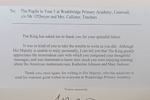 Year 5 received a Royal Reply last week! Before February half term, Year 5 wrote letters to the King as part of their persuasive writing unit. Their aim was to write and persuade King Charles to award Kathryn Johnson and Mary Jackson honorary OBE's for their services to space travel. Their mathematical genius helped John Glenn to be the first astronaut to orbit Earth and land safely, as well as being involved in the Moon Landing of 1969. Sadly, because of their race, and the level of discrimination and segregation at the time, their involvement was kept hidden - inspiring the book and film, 'Hidden Figures'. Well done, Year 5. A Royal approval of your work!